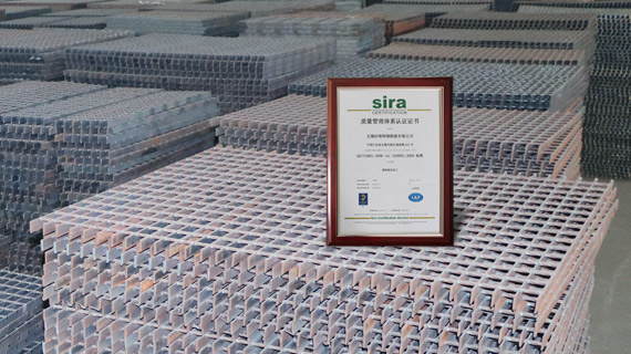 公司嚴格按中國GB700-88鋼材標準,鋼格板YB/T4001-1998標準生產,產品符合美國ANSI/NAAMM(MBG531-88)、英國BS4592-1987、澳大利亞AS1657-1985標準。